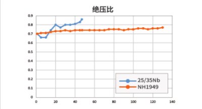 NH1949抗结焦新材料运行130天炉管表面温度1049℃,绝压比0.77,裂解炉仍可继续运行,无需停炉清焦;而传统材料运行47天炉管表面温度已经达到了1060℃,绝压比达到0.88,此时裂解炉需要停炉进行清焦。NH1949抗结焦新材料运行130天所产生的焦碳量和传统材料运行47天产生的焦碳量相当。